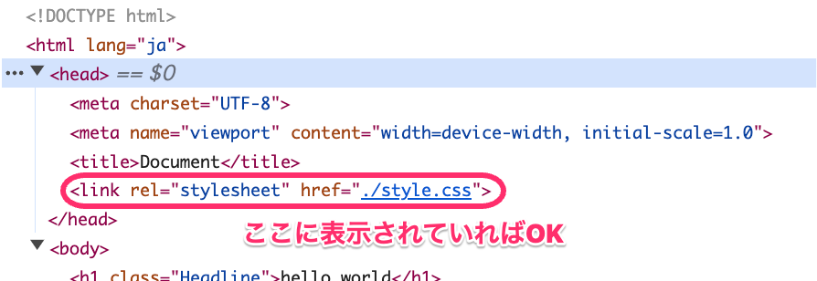 4</head>あるいはCSSファイル側の名前が間違っていないかも合わせて確認しましょう。linkタグではstyle.cssと書いているけどファイル名はstyles.cssだったなんてことはよくあります。